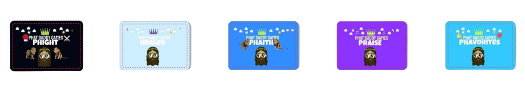 At Phat Daddy Games, we believe that faith can be fun! That’s why we offer a variety of exciting card games, each with a unique twist that will entertain you while deepening your relationship with God and each other.